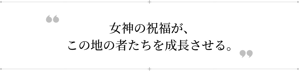 いなくなった人々、過ぎ去った時間。女神の地はそのすべてを覚えている。残された願望や欲望、希望や絶望が、長い時間の中で無限の可能性を秘めた結晶となり、聖木のもとに集まる。