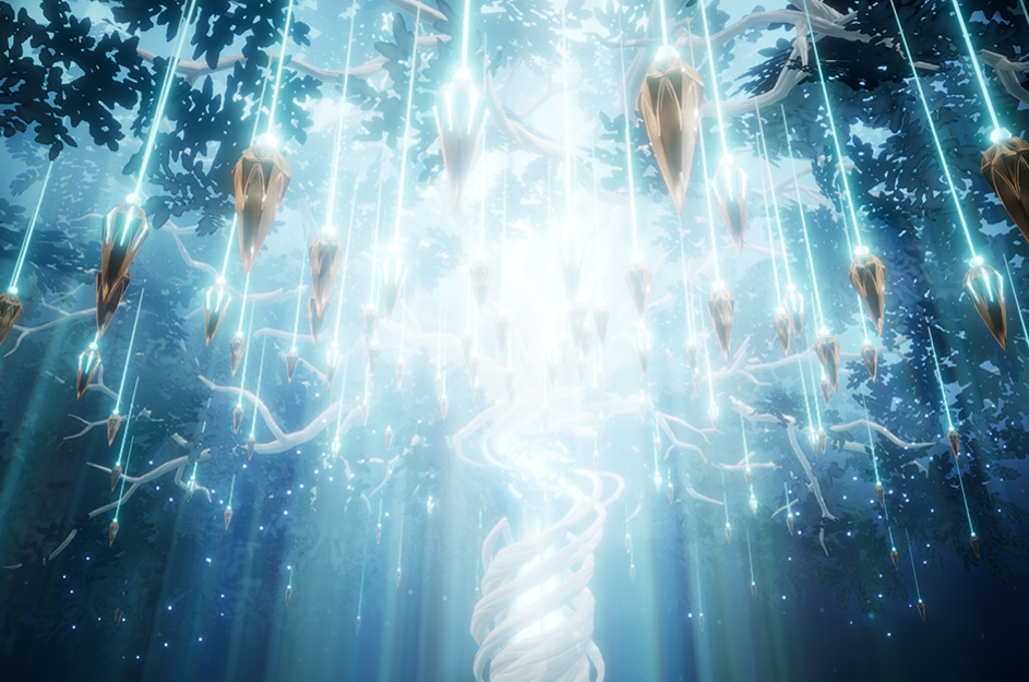 偉大な聖木は、この地のすべての魂と記憶を包み込む。偉大な聖木は、女神の意志により、幻想となった意志の欠片を、結晶として実らせる。
