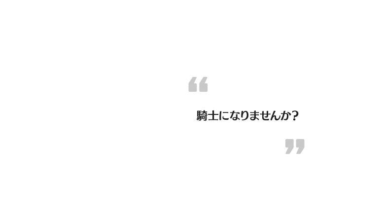 女神の祝福は、過去の英雄から、現在を生きるあなたに受け継がれる。彼らの魂は女神の意志とともに、あなたのもとへやってくる。騎士を目指す者よ。彼らと共鳴せよ。女神の祝福が偉大な英雄を呼び醒まし、あなたの武器となるだろう。